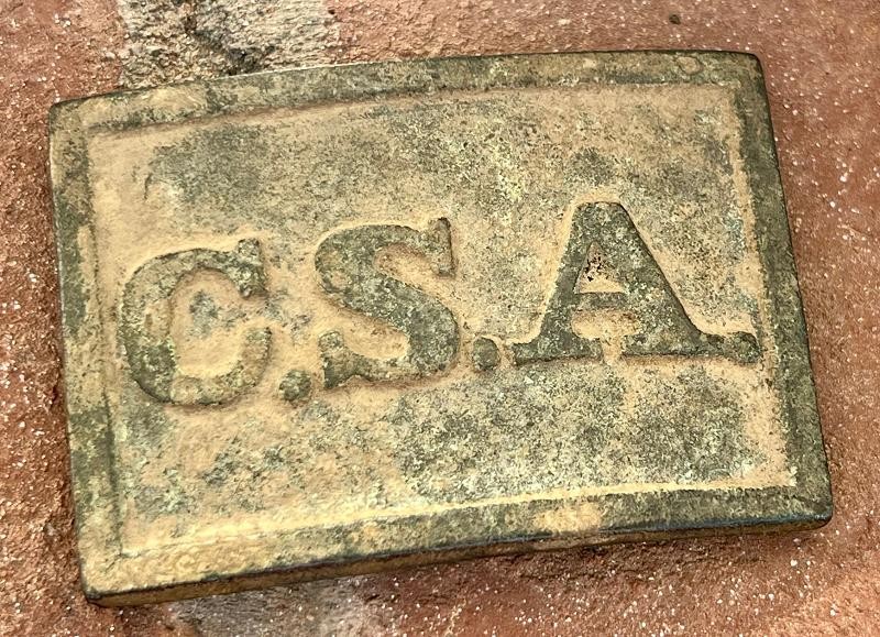 Confederate Waist Belt Plate with all the who, what, when, and where documented. This Confederate Waist Belt Plate has it's on video on YOUTUBE. I love this Confederate Waist Belt Plate and just got it today in the shop. This Confederate Waist Belt Plate is on consignment and price is ROCK SOLID. All three hooks, body curve, solid patina, and I mean nothing to whine and cry about.