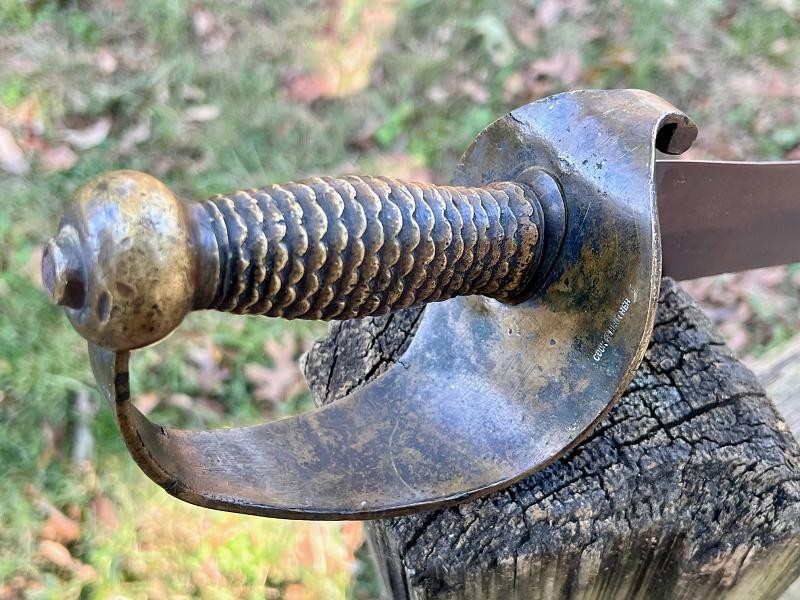 Cook & Brothers Naval Cutlass with crisp maker mark. This Cook & Brothers Naval Cutlass is solid with an awesome Southern Steel Blade. This Cook & Brothers Naval Cutlass has stunning Southern Sand Casting with crisp detail. Solid example with no play in the blade hilt connection. This is a super rare example that we seldom see for sale. Check out the YOUTUBE & TIK TOK VIDEOS on this Cook & Brothers Naval Cutlass.