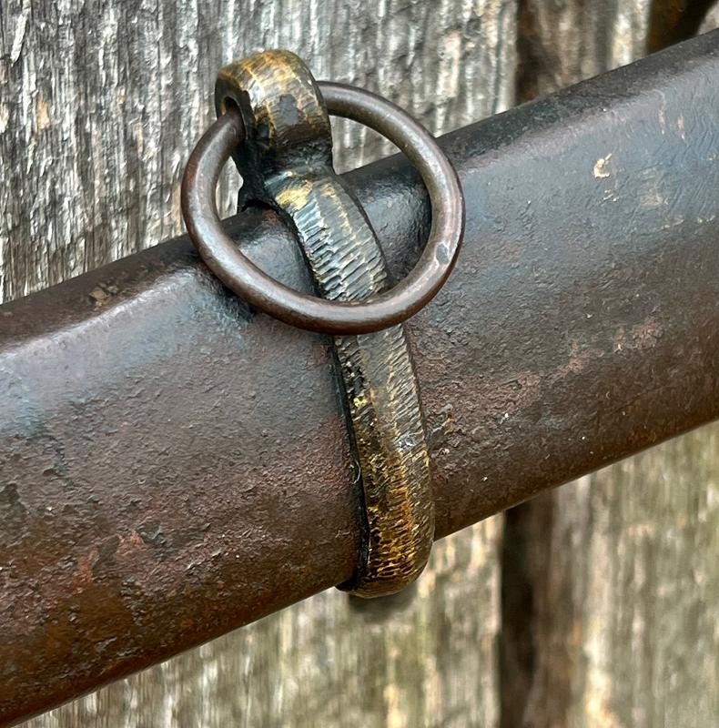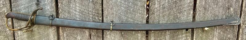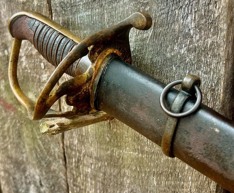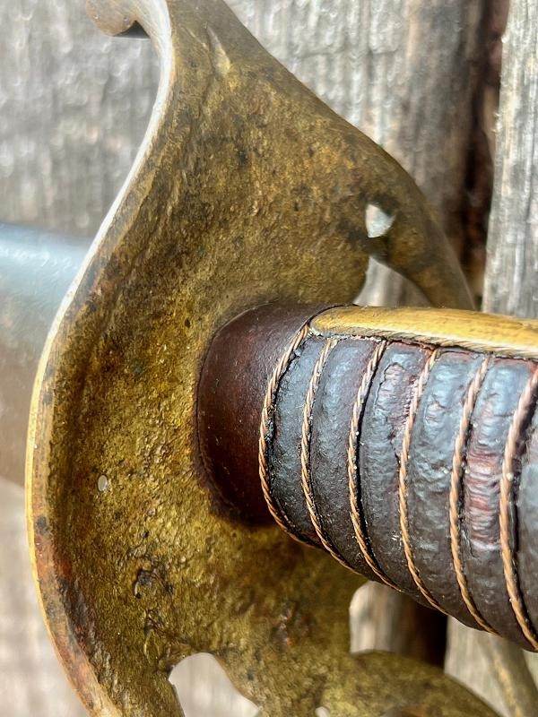 Nashville Plow Works Cavalry Sword with attic fresh Rebel Relics Strong Condition. This Nashville Plow Works Cavalry Sword is all original and free from restoration. So many of these examples have had the handles rewrapped. This Nashville Plow Works Cavalry Sword has one of the best scabbards you will ever see. The full-length blade has a couple of small Yankee cranium nicks. Nothing bad mentioned for accuracy. The Nashville Plow Works Cavalry Sword is the "HOLY GRAIL" of Confederate Swords. Even the play on the Bible passage of turning plow shares into swords.