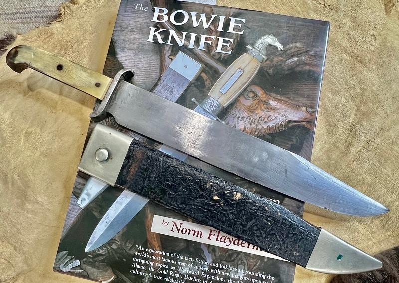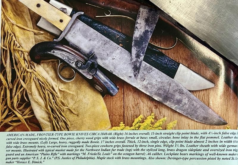 This American Made Sheffield Style Bowie Knife is published and awesome. The Bowie Knife Book is the Bowie Knife Book. This is the second knife photographed in the The Book. Text Brian Akins for faster than email service .... 615-7727008 The Knife was man's best friend before the dog.