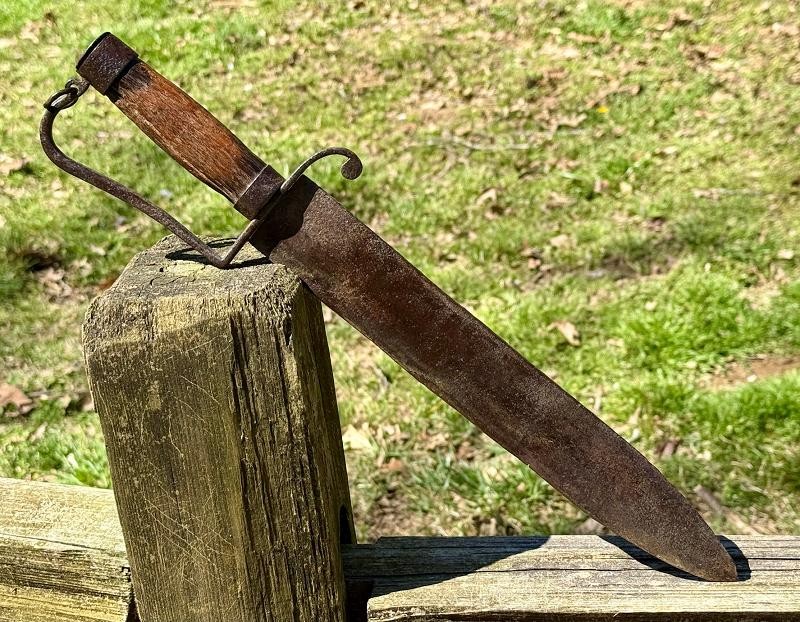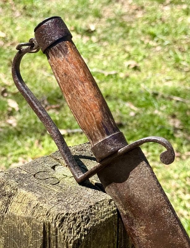 Confederate D-Guard Possibly Crafted by "Mr. Joe Hill". This Confederate D-Guard Possibly Crafted by "Mr. Joe Hill" who worked at a Carriage House in Virginia. This Confederate D-Guard Possibly Crafted by "Mr. Joe Hill" has a LANYARD RING which I find very rare and cool. Colt Revolvers with lanyard rings show up often with Virigina Cavalry History. This Antique Bowie Knife surfaced in Virginia and fresh to the market. Overall length hair over 17" inches with blade hair over 12" inches.