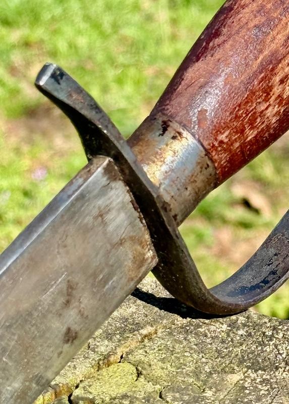 Georgia Armory Confederate D-Guard Bowie with an absolute fabulous clip point blade. This Georgia Armory Confederate D-Guard Bowie is solid as the come with no wobble or play. The original hard wood handle is Rebel Relics Strong. The peen is smooth and as issued. This Georgia Armory Confederate D-Guard Bowie is one of the best examples you will ever have a chance to own. Please check out the YOUTBE VIDEO on this Antique Bowie Knife.