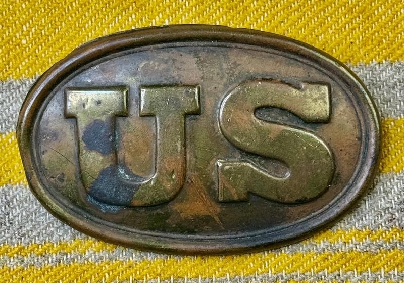 Regulation 1839 Pattern US Cartridge Box Plate with nice full lead and both loops. This Regulation 1839 Pattern US Cartridge Box Plate is non-excavated with soldier's initials carved on back. If your civil war relics collection is missing an example Rebel Relics Yell.
