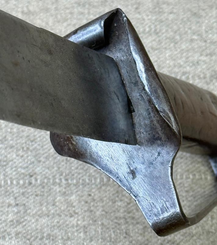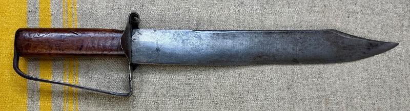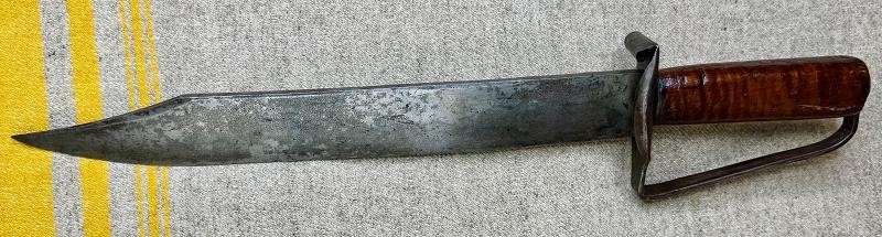 Published Confederate D-Guard Bowie with wicked 14"-inch clip point blade. This Published Confederate D-Guard Bowie is on page 196 of Josh Phillips Confederate Bowie Book. I love the blade and made by a very skilled Armorer's Hammer. This Southern Published Confederate D-Guard Bowie is solid as they come with no wobble or play. Please check out the images and read about the blade inscription.