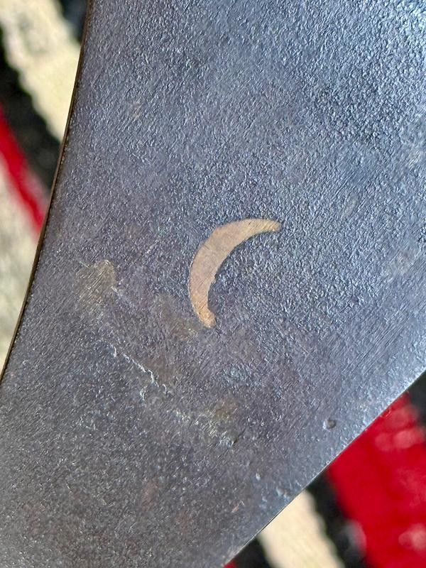 Antique Native American Pipe Tomahawk with all the Wild West Eye Appeal We Love. This Antique Native American Pipe Tomahawk has an amazing patina. Notice the hammer weld bit "blade" insert. This Antique Native American Pipe Tomahawk has "CRESENT MOON" blade decoration. The head is tight to the beautiful wood haft. The haft has decorative mouthpiece end with drop hole. The haft is clear and air blows freely. The bowl is classic 1850s design with wrapped hammer welded design. This is a "FIRST LOOK" authentic head with truly classic Native American Display Power.