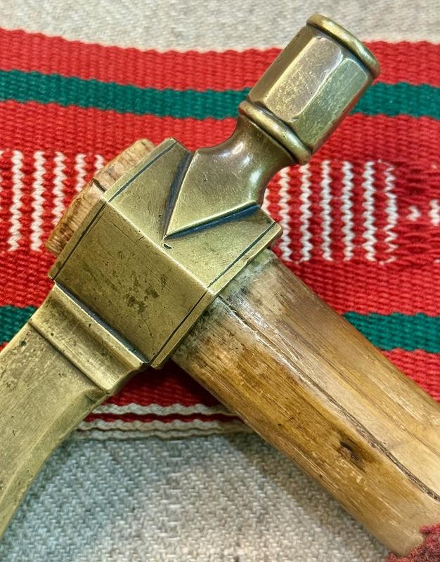 This Antique Native American Brass Pipe Tomahawk has a video on YOUTUBE & TIKTOK. Check out the video to get a feel you just can't get from pictures. Your business is worth the extra effort to the vids.