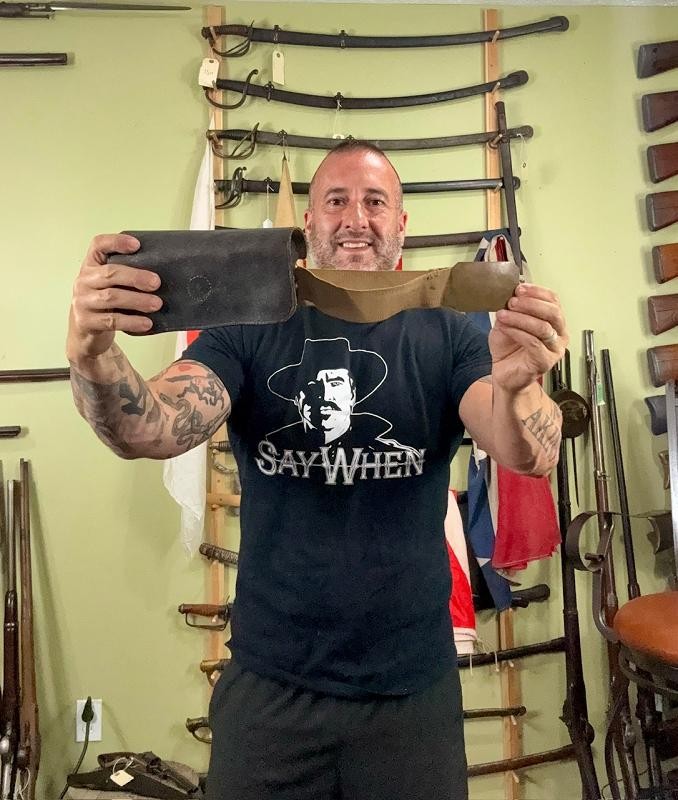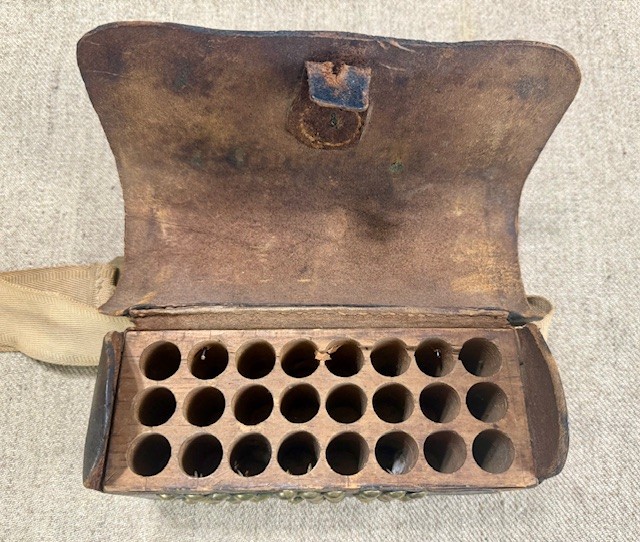 This Militia .69 Caliber Cartridge Box on Belt has a video on YOUTUBE & TIK TOK. Rebel Relics Hotline .... 615-7727008