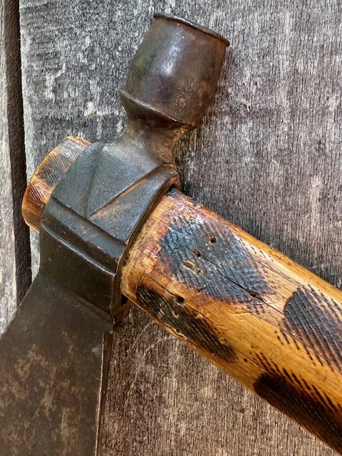 Native American Plains Indian Pipe Tomahawk with Original Drop. This Native American Plains Indian Pipe Tomahawk has otter skin wrapped handle. The file branding is a classic Native American Plains Indian Decoration. I think it was a decoration and also for better grip. Fresh to the market and had been in a collection on the East Coast for decades. My friend got it out of the collection last year. He has handled some of the best Pipe Hawks known over 50 years of collecting. He and I both marveled over this exceptional example. This Native American Plains Indian Pipe Tomahawk is a Killer and one that would be hard to upgrade. Enjoy the images and a REBEL RELICS YELL would be appropriate.