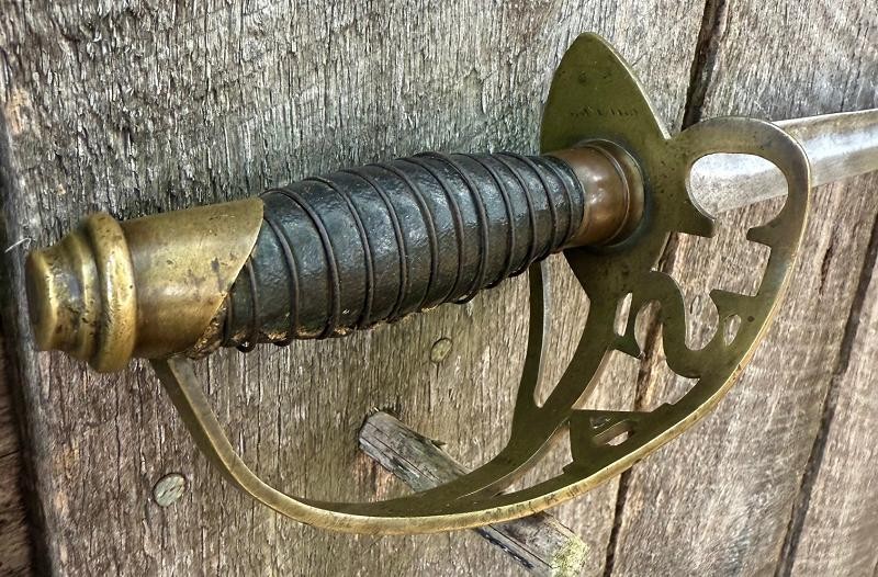 B. Douglas "C.S.A." Hilt Field & Staff Sword made in Columbia, South Carolina. This B. Douglas "C.S.A." Hilt Field & Staff Sword is untouched and attic fresh. The grip and wire are original with no play or wobble in the blade hilt connection. The blade is full length and beautiful with no battle boo boos. This B. Douglas "C.S.A." Hilt Field & Staff Sword is one rare Rebel Relic. You will see the Kenansville made Staff Sword way more often for sale. This is an example many collections are missing. Enjoy the images and feel free to reach out with any questions.