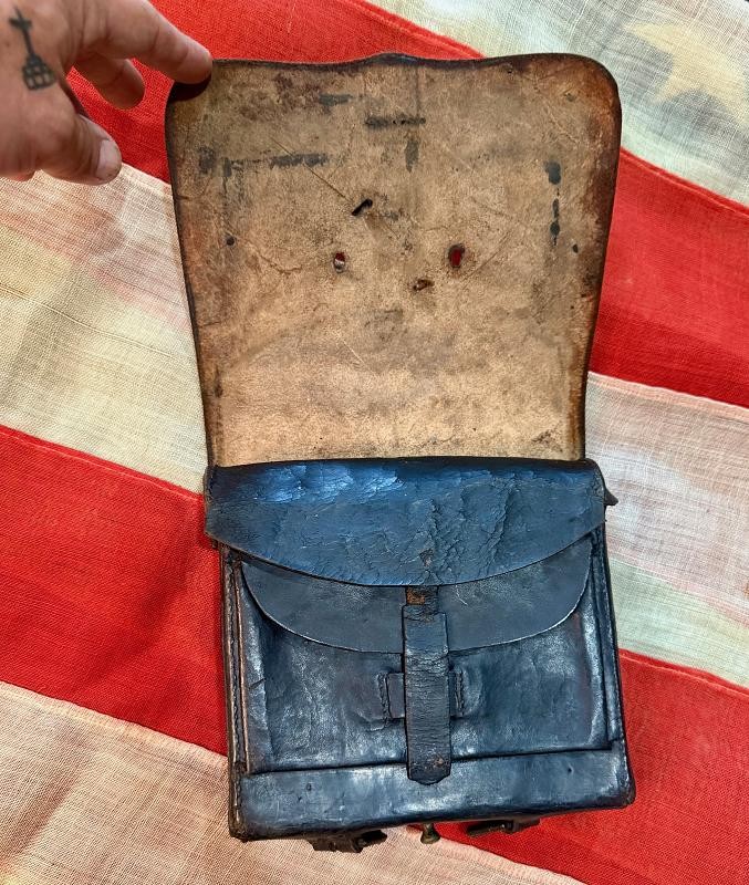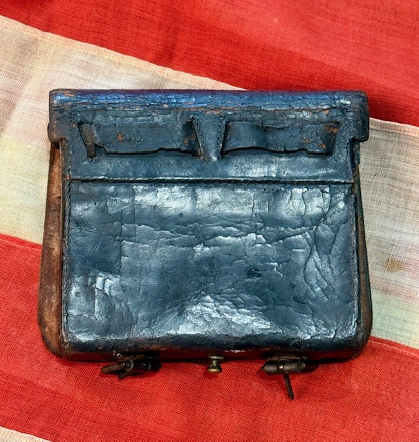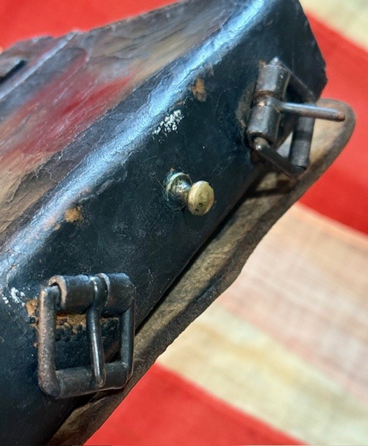 South Carolina Cartridge Box fresh from Columbia S.C. This South Carolina Cartridge Box has the single tin Confederate Boxes have. The closure stud is also unique to Southern made boxes. This South Carolina Cartridge Box looks to have had the scarce South Carolina State Seal Plate on the front. Confederate leather is scarce, and this box is solid. This box shows honest usage and condition is consistent with a cartridge box that saw the war. Checkout all the images and see the used but not abused condition. The REBEL RELICS PRICE POINT IS UNBEATABLE. I have seen lesser examples thousands more.