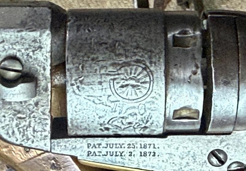 Colt 4 1/2" Octagon Barrel Revolver with matching serial numbers. This Colt 4 1/2" Octagon Barrel Revolver has nice working action. These 5-shot .38 rimfire Colts were out in the American Wild West early. Made from 1873 to 1875 around 4,000 produced. The patent dates are visible with original walnut grips. This Colt 4 1/2" Octagon Barrel Revolver has plenty of honest usage but solid. An awesome example of an early American Wild West Colt Revolver.