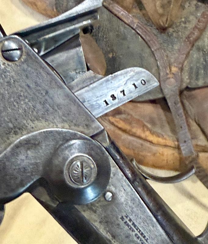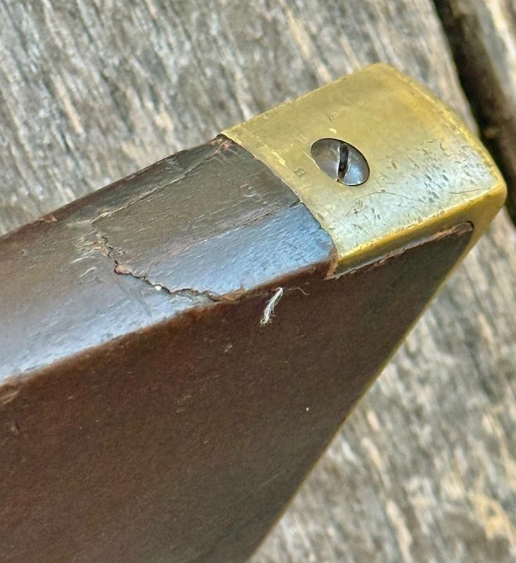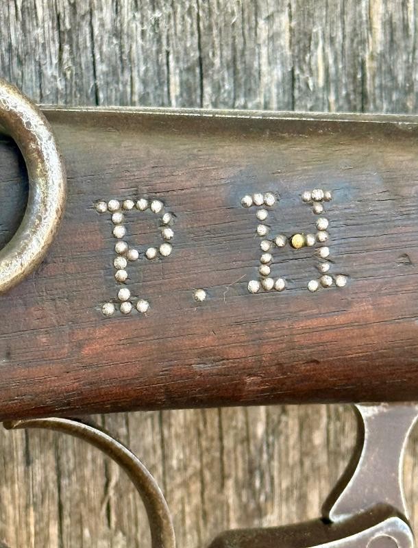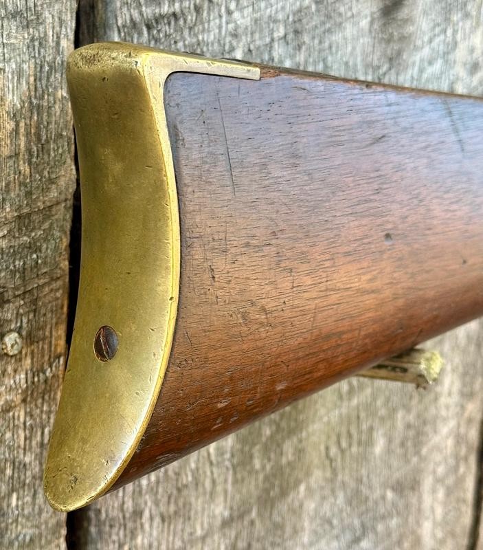 Civil War Starr Carbine with nice working action and visible maker marks. This Civil War Starr Carbine has cool sling wear on the stock. No doubt this civil war carbine saw action. There is a set of initials nicely done in the walnut stock. Normally I associate this with Southern usage. Rebels captured and repaired Yankee captured weapons. This is a solid civil war carbine with honest wear. The wood stock by the brass butt plate shows some wear. Solid and mentioned for accuracy and reenforce the honest service .... fired in anger WOW FACTOR. This Civil War Starr Carbine is priced 100s under similar examples.