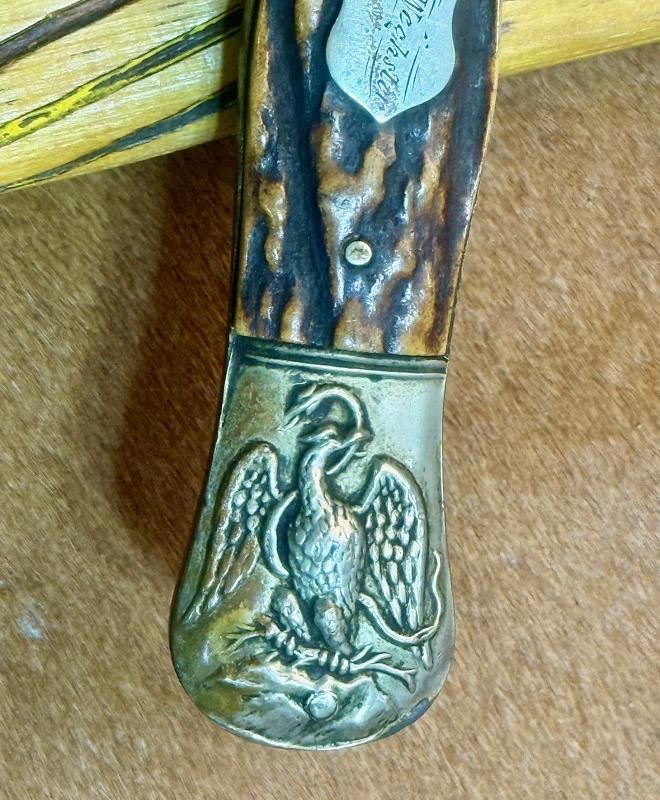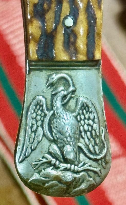 Civil War Era Sheffield Bowie with Mexican Eagle Pommel and original sheath. This Civil War Era Sheffield Bowie with Mexican Eagle Pommel is in wonderful condition with strong maker mark. This Civil War Era Sheffield Bowie with Mexican Eagle Pommel displays beautiful and I love the Mexican Eagle & Snake pommel.