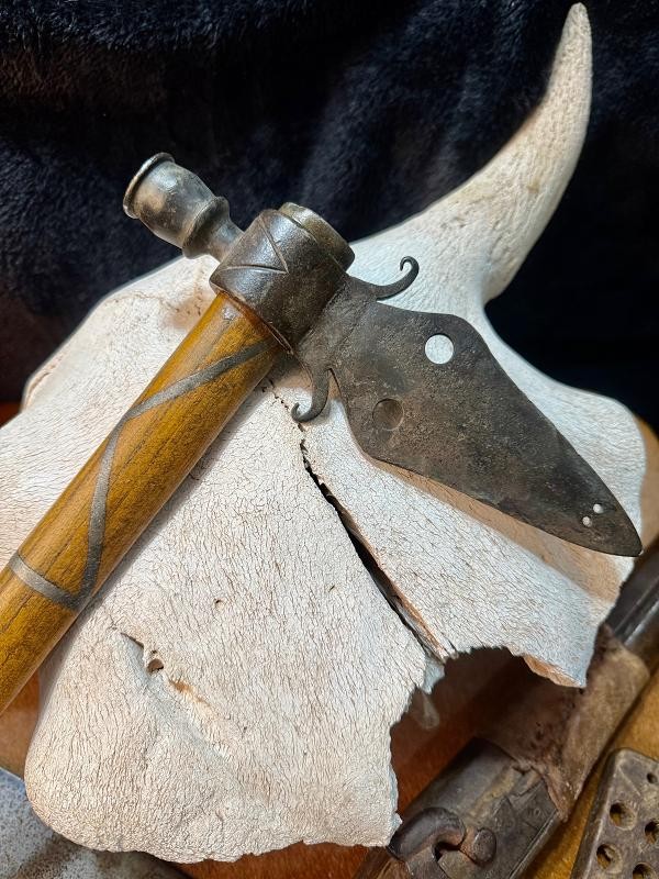 This Spontoon Pipe Tomahawk is Rebel Relics Priced .... I watch the auctions, and similar examples always bring $3,500.00 and UP. Rebel Relics Hotline .... 615-7727008