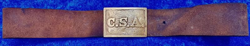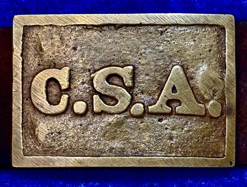 Confederate "C.S.A." Belt and Buckle with extremely crisp Southern Sand Casting. This Confederate "C.S.A." Belt and Buckle displays with a deafening Rebel Yell. Rebs & Yanks this one walk and talks with Southern Slang and doesn't need a thang. If you have ever wanted an example this Confederate "C.S.A." Belt and Buckle is a keeper. No upgrade needed and Rebel Relics Priced for Christmas in Dixie Southern Hospitality. I am seeing just the waist belt plates "C.S.A." priced at $5,500.00 to $6,500.00 .... This example is as nice as they come.